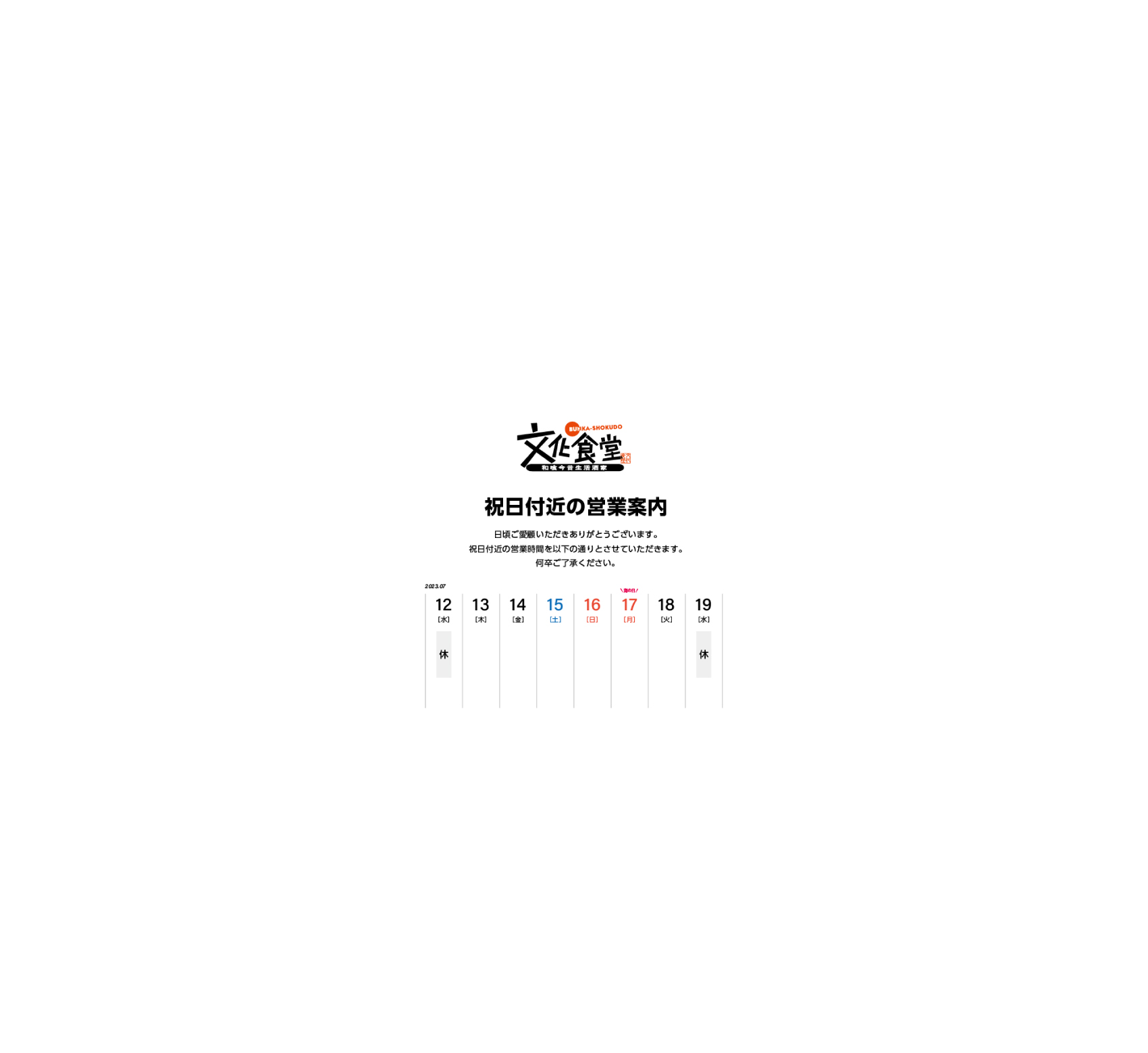 他の日にちは通常営業させていただきます!